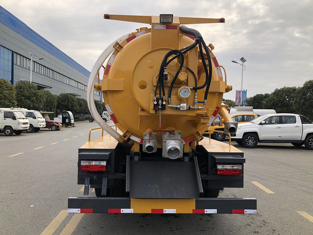 吸污部分:7方污罐,罐体6mmQ235优质碳钢,配淄博SK-12水循环泵,8米吸污管一根,进气管加不锈钢过滤网,真空防溢阀,后盖卡扣锁紧,视污量管,后尾部加装1个力拓牌100mm的球阀吸污口150mm排污口,100mm口径侧抽,罐体带举升功能,后门带液压开启。