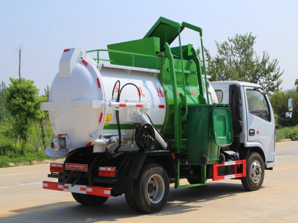 将桶装餐厨泔水垃圾经专用提升架缓缓上提,在车顶部倒入车厢内(车箱可分为箱体和罐体),被投放的垃圾经过强有力的推板挤压,在罐体内实现固液分离,被分离的液体进入罐体底部的污水箱,固体垃圾被压缩储存在罐体,体积变小,如此反复待装满后送**餐厨垃圾资源优化处理厂。